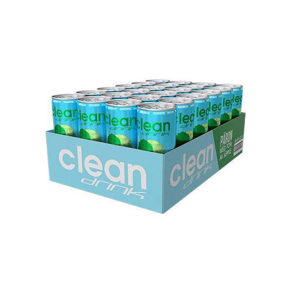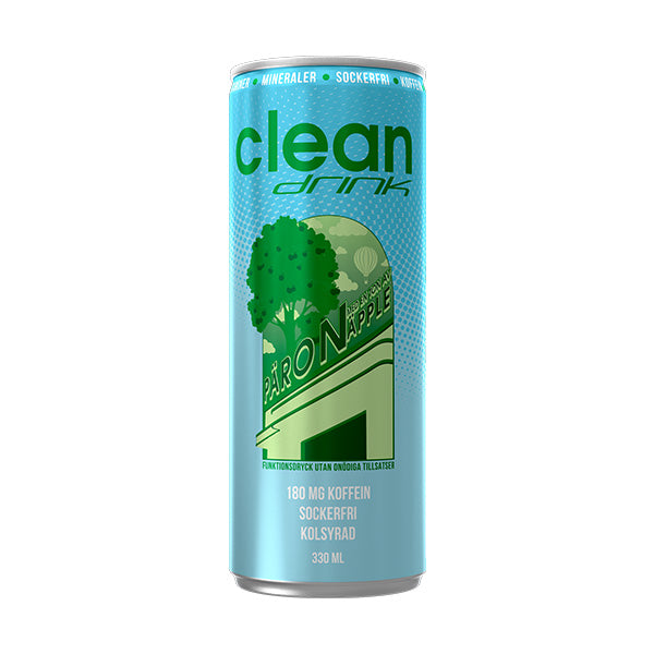 Clean drink Päron/Äpple är en sockerfri energidryck med fräsch smak av frukt från svenska trädgårdar. Utvecklad i Sverige för en aktiv livsstil och framtagen för dig som vill ha en funktionsdryck som kombinerar smak, funktion och energi i en och samma burk. Drycken innehåller naturligt koffein tillsammans med vitaminer och mineraler som magnesium, vitamin C, niacin, pantotensyra, vitamin B6, vitamin E, zink, folsyra, biotin, krom, vitamin D och vitamin B12.
